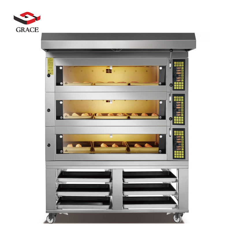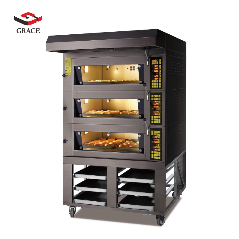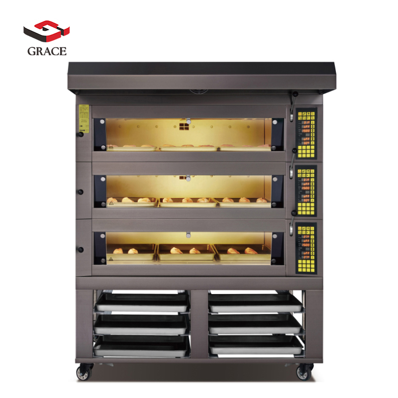 ◉High-capacity baking performance – Available in 6-tray or 9-tray configurations (400×600 mm), ideal for bakeries and restaurants producing bread, pastries, and pizzas in bulk.